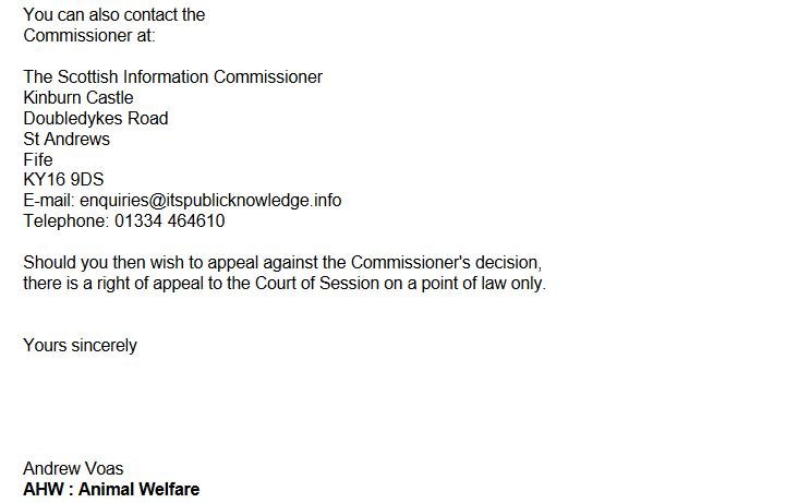 Should you remain dissatisfied after completion of the review process you may, within 6 months, apply to the Scottish Information Commissioner, Kinburn Castle, Doubledykes Road, St Andrews, Fife, KY16 9DS, to establish whether your request for information has been processed in accordance with Part 1 of the Freedom of Information (Scotland) Act 2002. You may also request an appeal through the Commissioner\'s online appeal service which is available 24/7 and offers requesters real time help and advice about their appeal – www.itspublicknowledge.info/Appeal Should you remain dissatisfied after the conclusion of an application to the Scottish Information Commissioner you have the right to appeal to the Court of Session on a point of law.