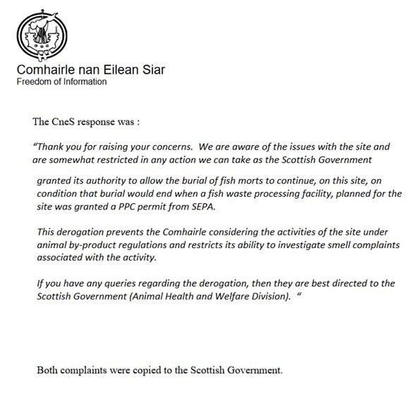 You mentioned that Whiteshore Cockles had lost their license. They are still in business as far as I can see. They are still burying salmon in North Uist this week. Please don’t publish my name against this news.