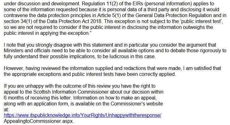 On 16 November 2022, the Scottish Government refused $camon $cotland's FOI review request: