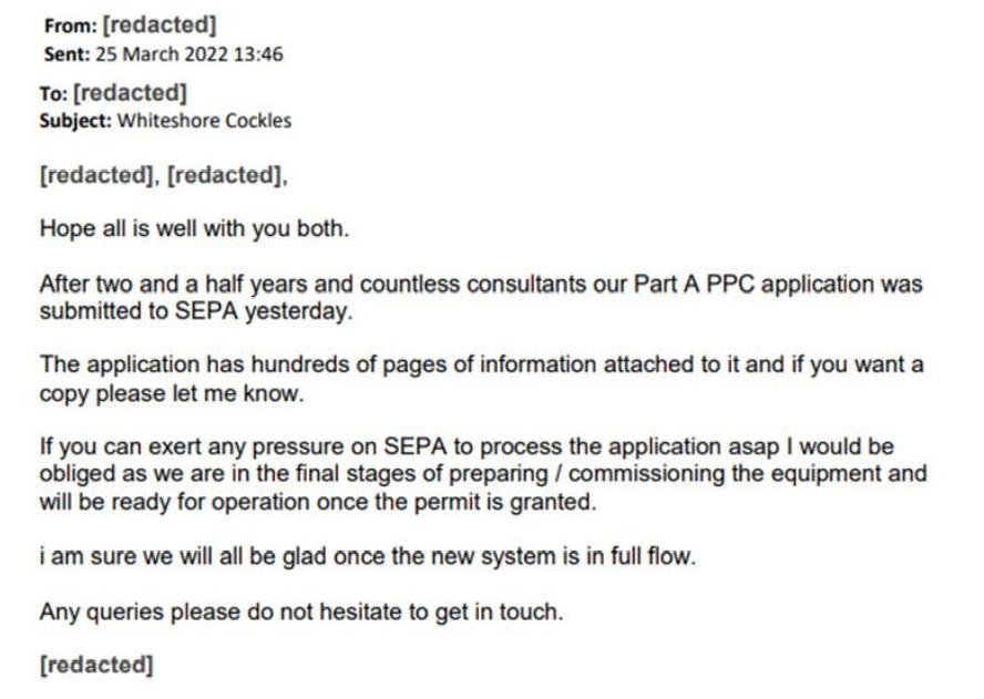 Annex 4: Whiteshore Cockles FOI disclosure 17 October 2022