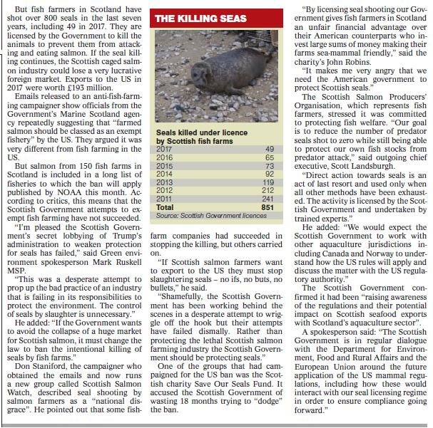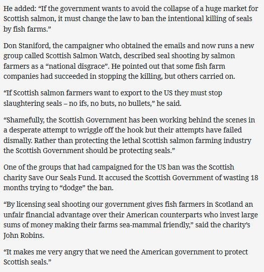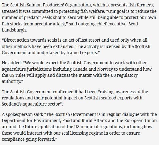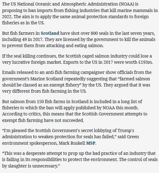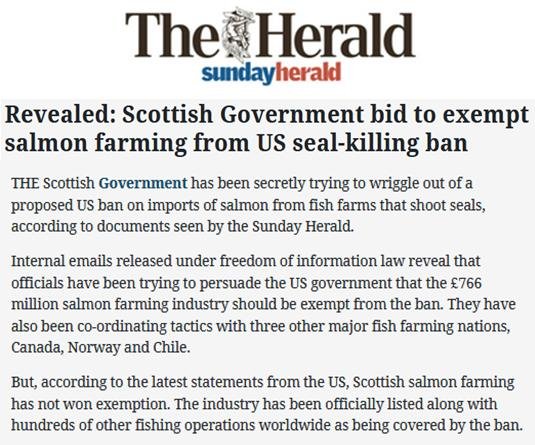 Herald: "US warning over continued killing of seals by Scots fish farms"