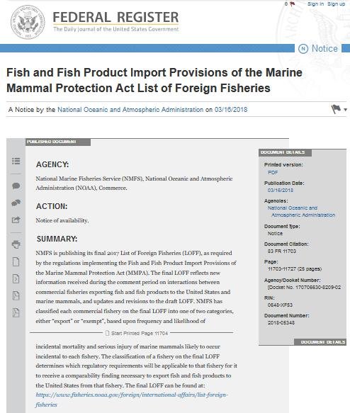 Read more via NOAA's List of Foreign Fisheries