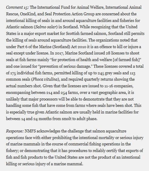 "Scottish salmon has five years to cut seal deaths before NOAA action"