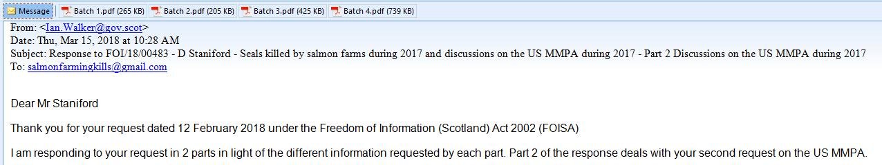851 (827 killed by salmon farms) out of 1702 seals killed in Scotland (exactly 50% killed by fish farms and 50% killed by fisheries)