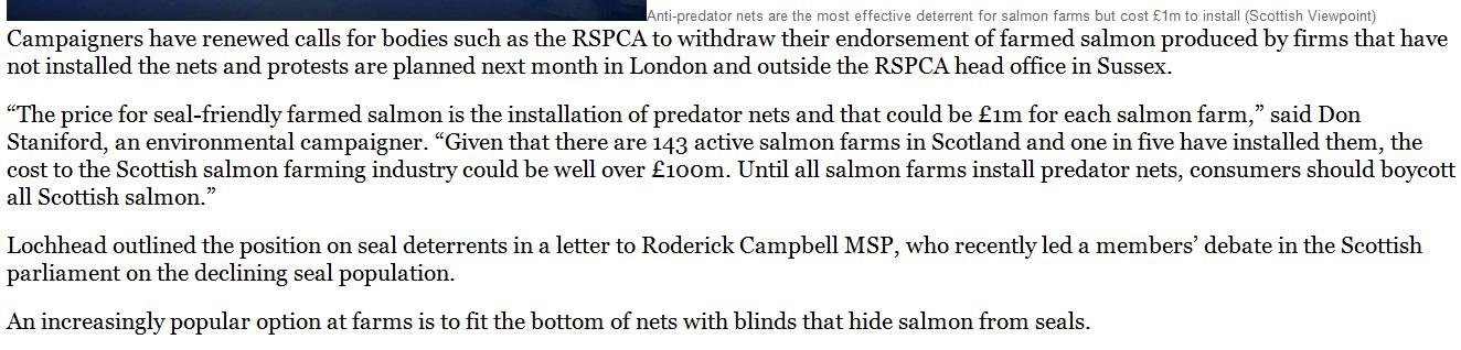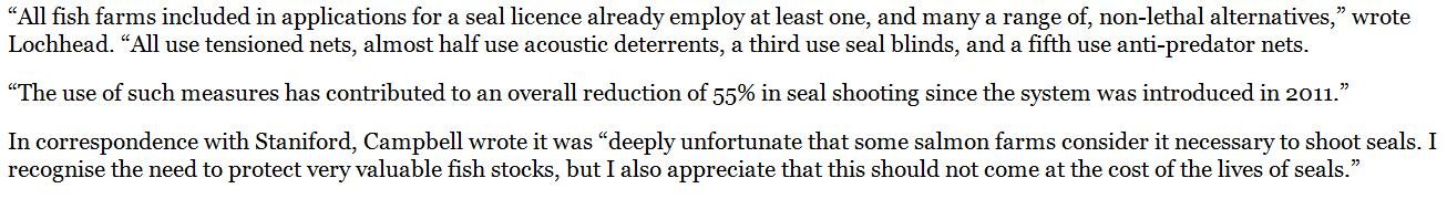 Read more background via GAAIA's "The Killing Farms" and "Did a seal die for your salmon meal?"
