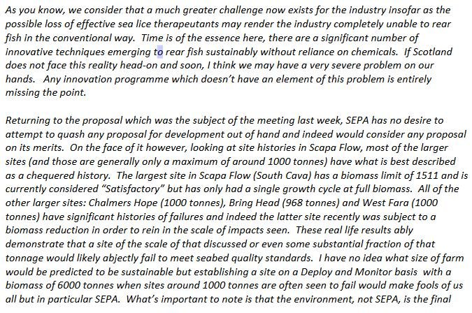 The "not so secret" memo from SEPA to Marine Scotland continued: