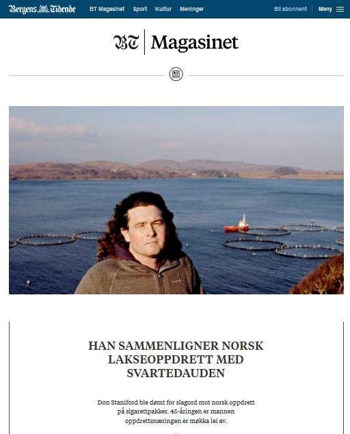 Before Christmas, he could prove that 175,000 salmon died during unsuccessful delousing at Marine Harvest. In a major article in The Herald Scotland was Staniford work credited before the case went around the country.