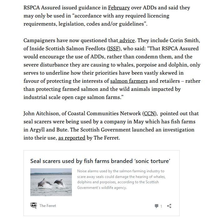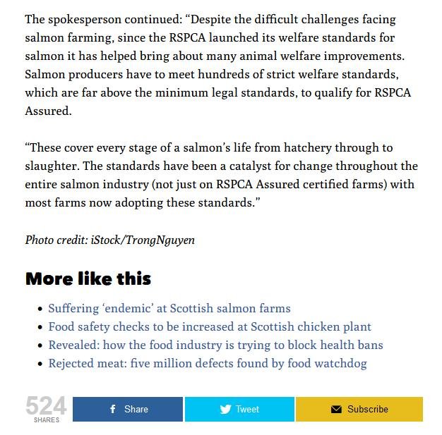 The Ferret: “RSPCA Assured food label scheme accused of protecting ‘salmon farmers and retailers’”