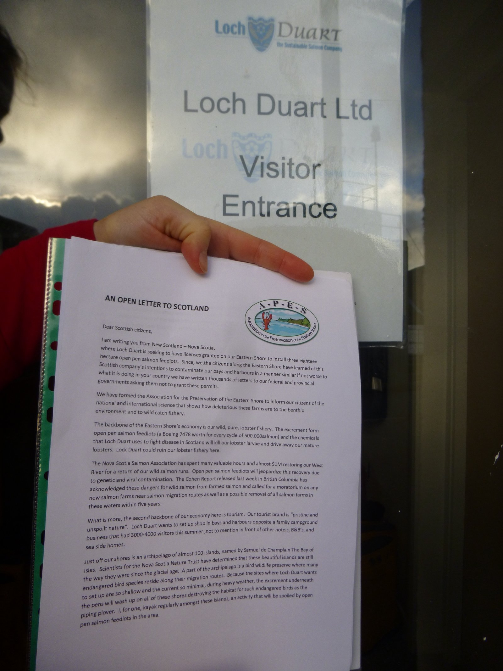 Read a letter to Loch Duart from APES in Canada (November 2012) - online here