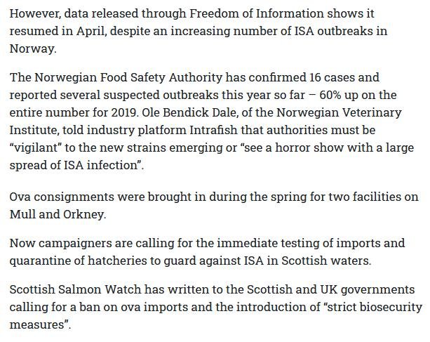 Read more via Norwegian Salmon Ova Slip Back Into Scotland (as Infectious Salmon Anaemia plagues salmon farms in Norway)