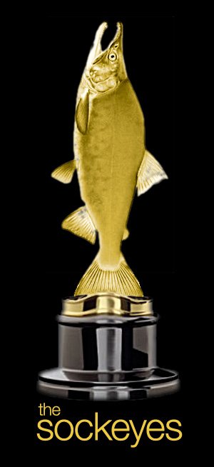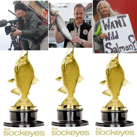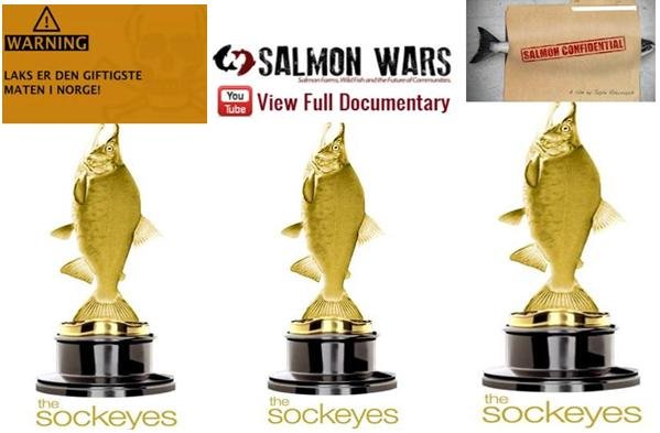 The piscatorial Oscars take place tomorrow night in Salmon River – here's a sneak preview of the salmon champions in the running for a prestigious 'Sockeye'. Hot favourite to reel in 'Best Picture' is Twyla Roscovich's 'Salmon Confidential' whilst Silver Donald Cameron's 'Salmon Wars' looks nailed on to lift the 'Best Documentary' prize. 'Hazardous Norwegian Salmon Dinner', a tasty offering from the Green Warriors of Norway, could round off a bad evening for Norwegian farmed salmon.