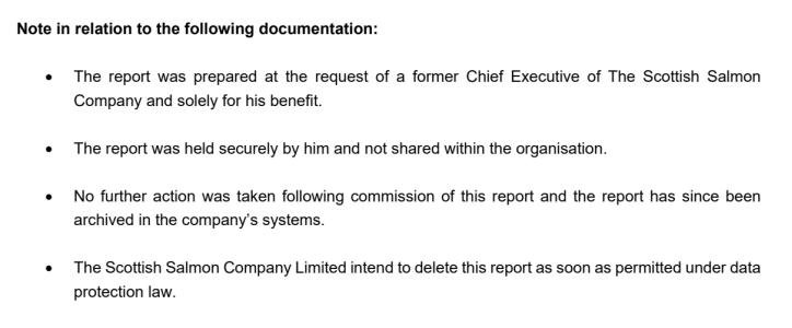 The Ferret article does attach this document (online via Original Document) referring to "the request of a former Chief Executive of The Scottish Salmon Company":