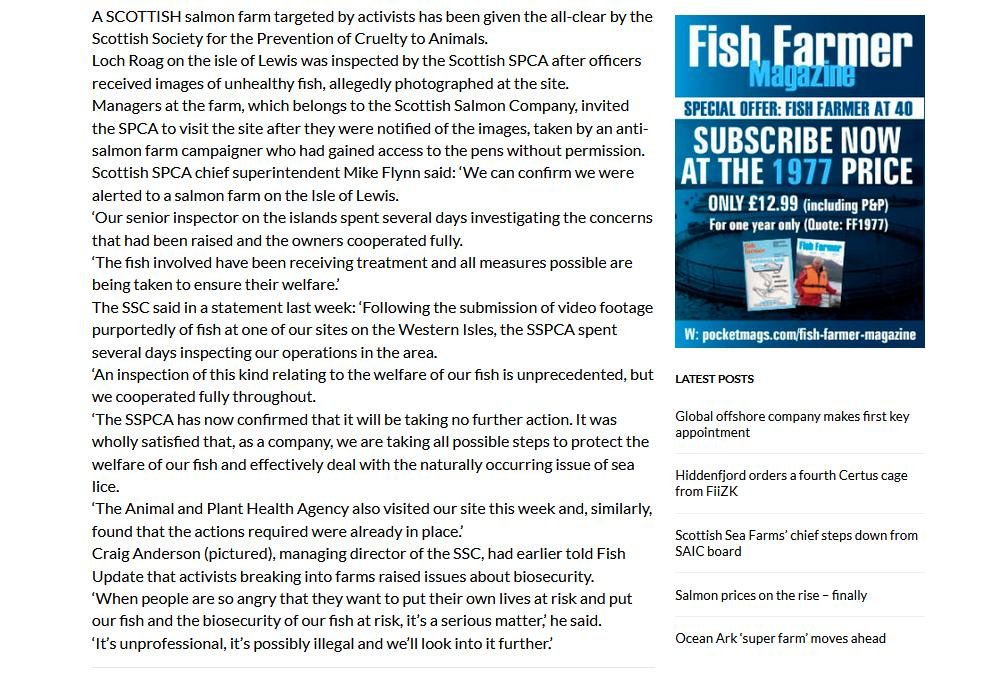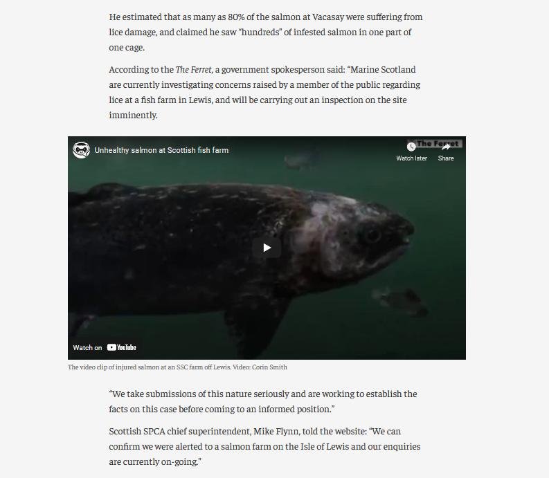 "It’s unprofessional, it’s possibly illegal & we’ll look into it further" said Craig Anderson (boss @salmon_scottish) in 2018 after Corin Smith filmed inside a disease-ridden salmon farm https://t.co/NGOxIOeDXV