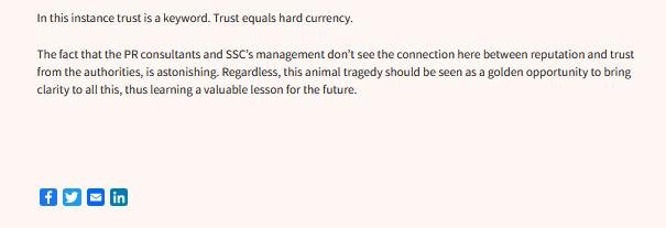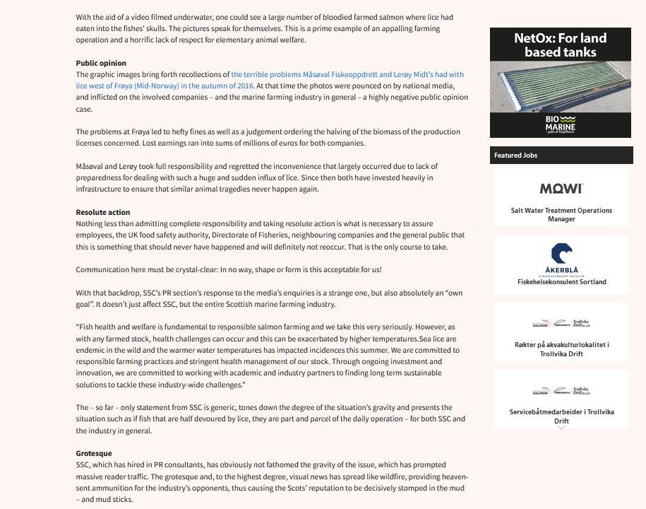 The scale of the tragedy in Loch Roag and The Scottish Salmon Company's "own goal" led to a backlash by Salmon Business: