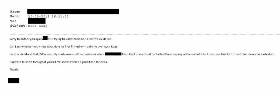 And this email (online via Original Document) which appears to be from the private investigator hired by the former Chief Executive of The Scottish Salmon Company dated 24 September 2018: