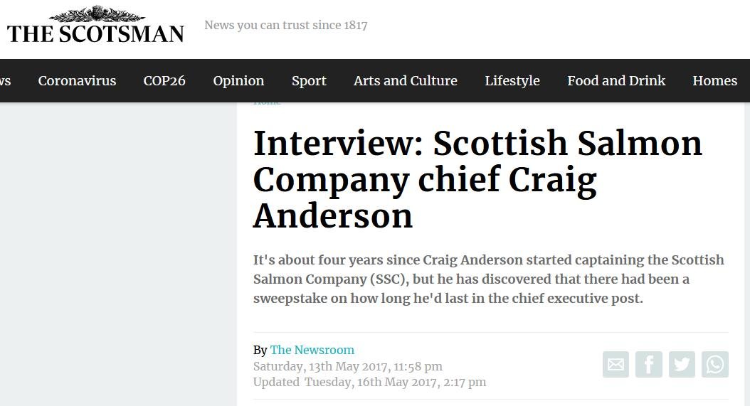 Undercurrent News reported in November 2013 that Craig Anderson became boss of The Scottish Salmon Company on 1 January 2014: