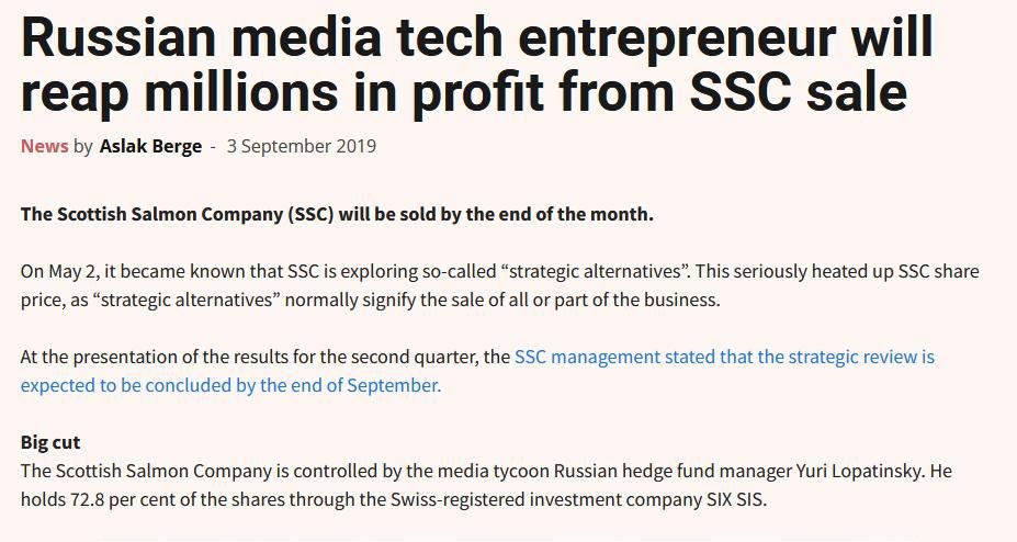 Whilst working in Russia, Craig Anderson may have encountered Ukrainian property tycoon and investment banker Yuri Lopatinsky (the controlling shareholder in The Scottish Salmon Company before selling out to Bakkafrost in 2019). Salmon Business reported in September 2019: