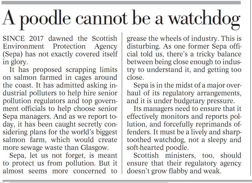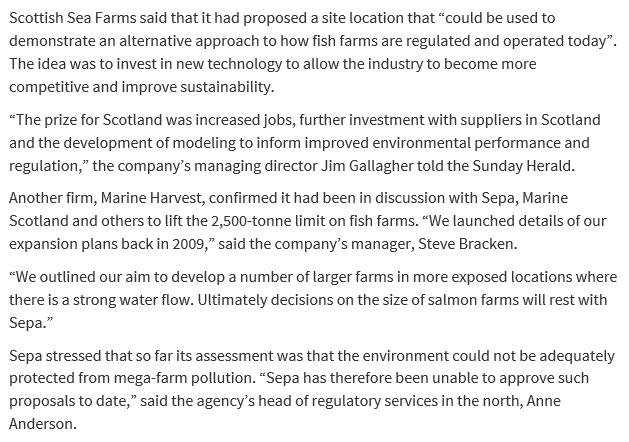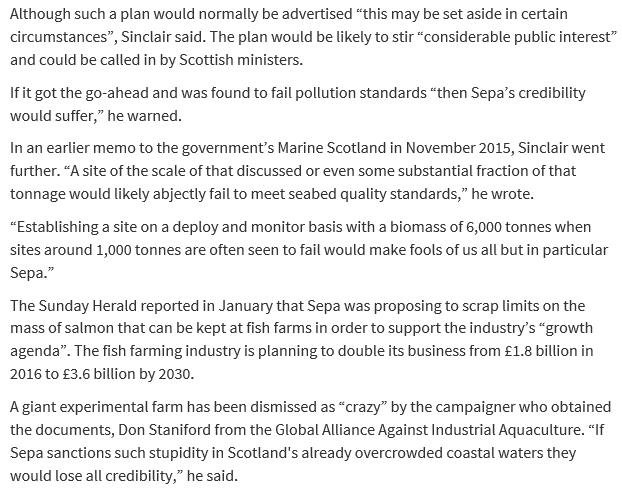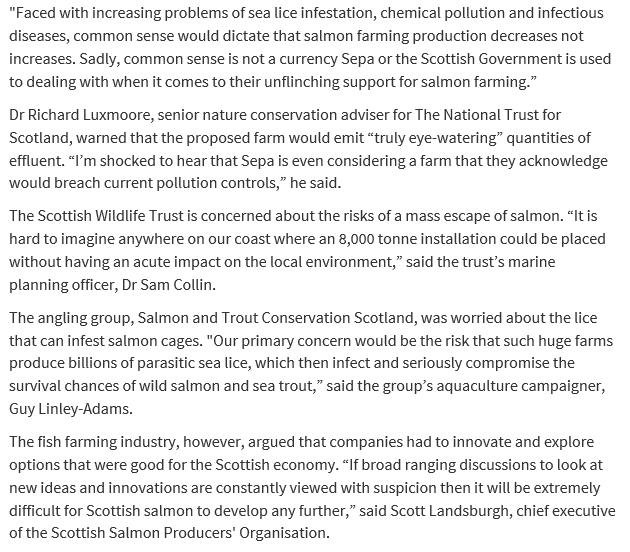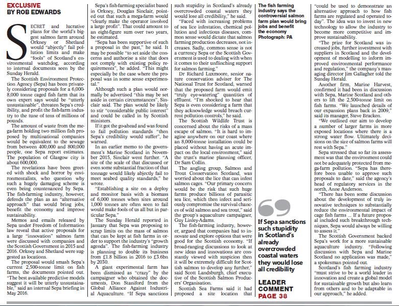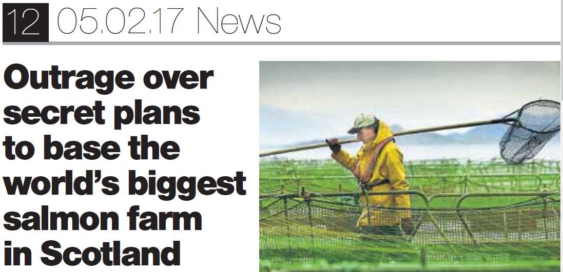 Today's Sunday Herald reported: "Outrage over secret plans to base world's biggest salmon farm in Scotland"