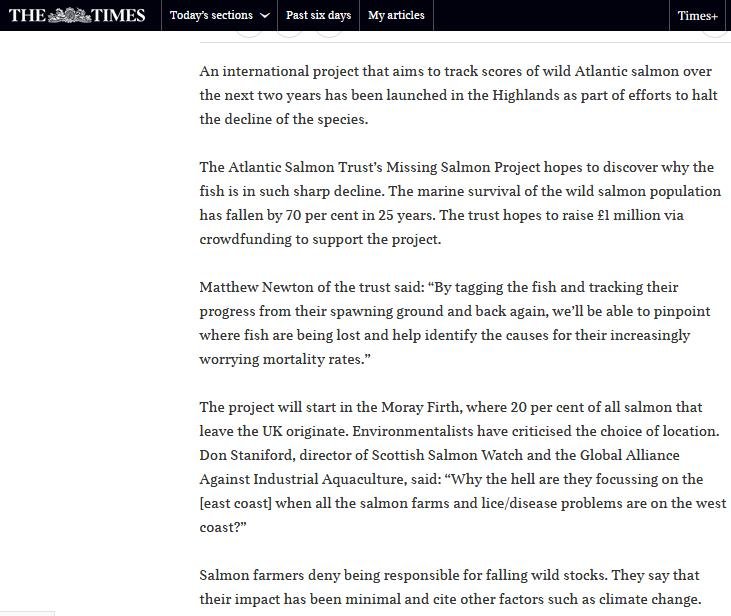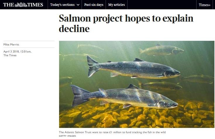 "Conservationists launch biggest study of its kind to find out why Scotland's wild salmon have declined so much" (The Herald, 3 April 2018)
