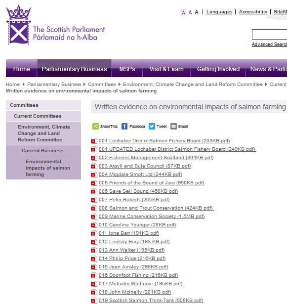 Over 70 written submissions to the Scottish Parliament's inquiry into the environmental impacts of salmon farming are now available online (written submissions to the Rural Economy & Connectivity Committee are being accepted until 27 April).