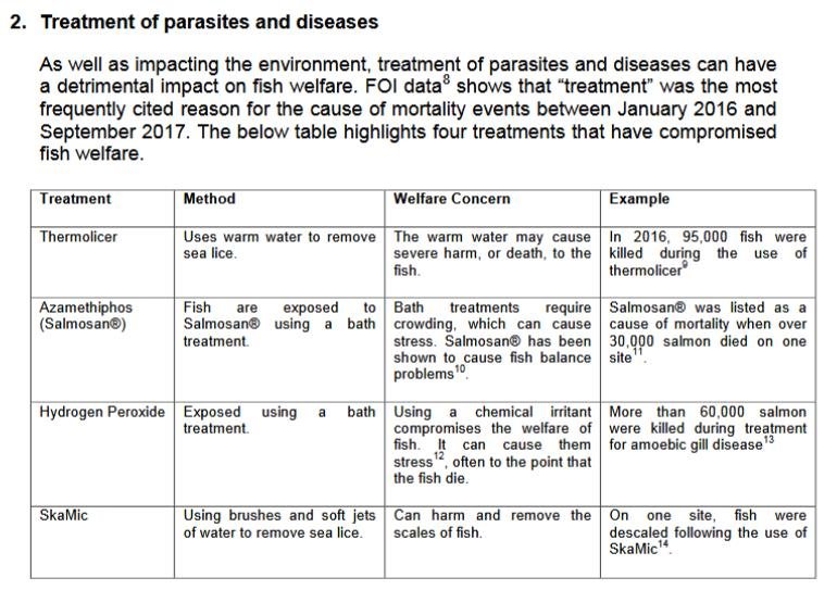 "During the presentation of the report to the Scottish Parliament, animal welfare was discussed and welfare standards were described as “very high”," continued Compassion in World Farming. "Whilst we value the efforts of those in the industry and key certifying bodies (e.g. RSPCA Assured) to improve or maintain welfare, the high levels of disease, parasites, and mortality, and the stress and injury caused by parasite treatments are in no way consistent with “very high” standards. The high mortalities associated with sea lice clearly indicate that the sector is operating beyond its limits. Compassion in World Farming strongly recommends that expansion of salmon farming, as proposed by industry, should not proceed."