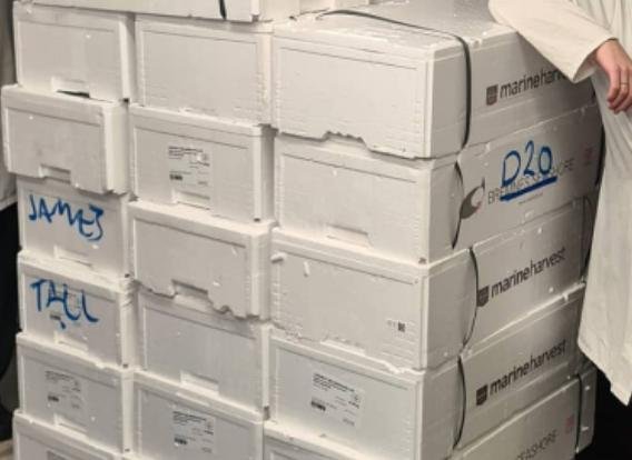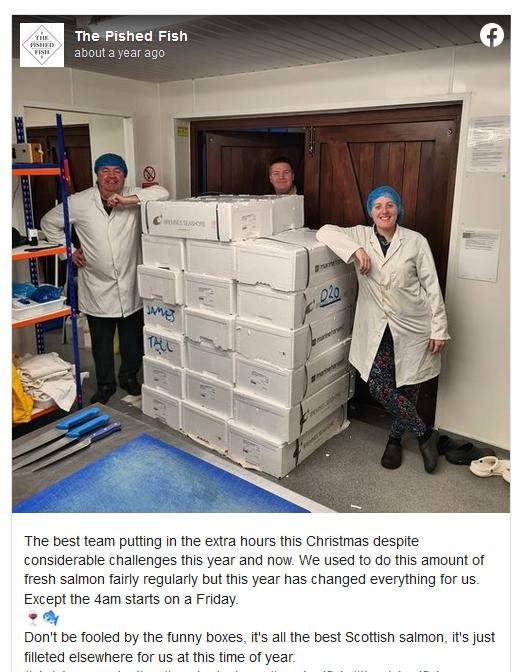 It appears from the boxes in the photo below that The Pished Fish sources Scottish salmon from Mowi (formerly called Marine Harvest – Mowi changed their name in January 2019 due to what their CEO admitted was "negative consumer perception" in the name Marine Harvest):