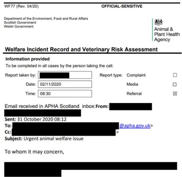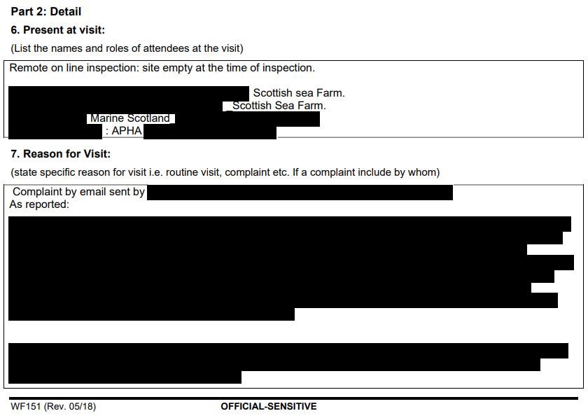 Reading between the redacted lines, it appears that APHA's 'inspection' of Scallastle Bay was prompted by a complaint in October 2020 which attached ca. 19 photos.