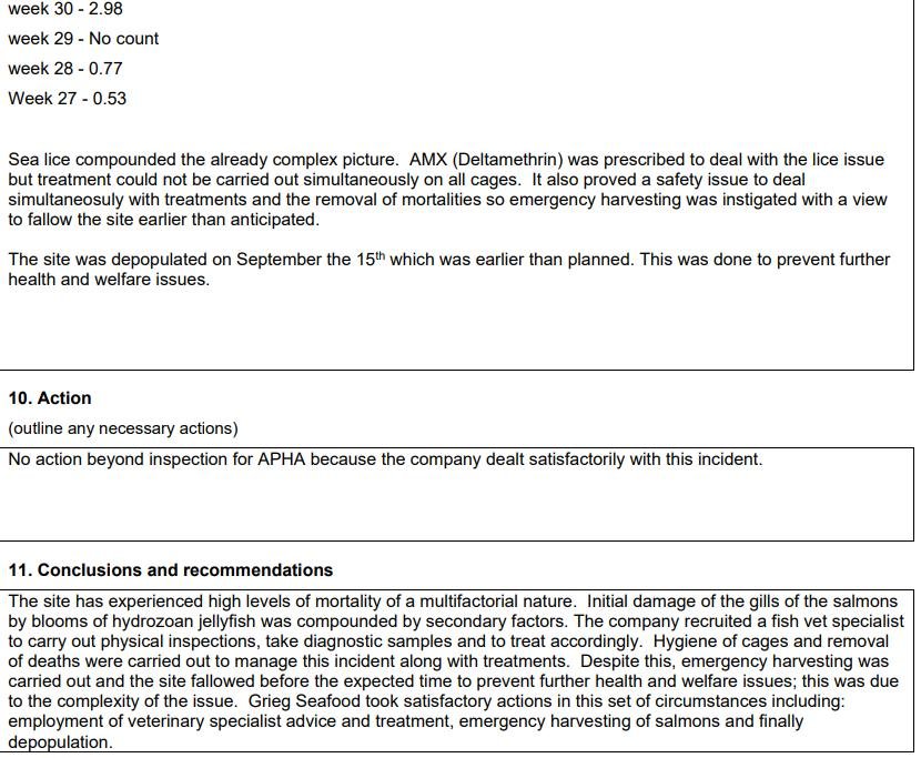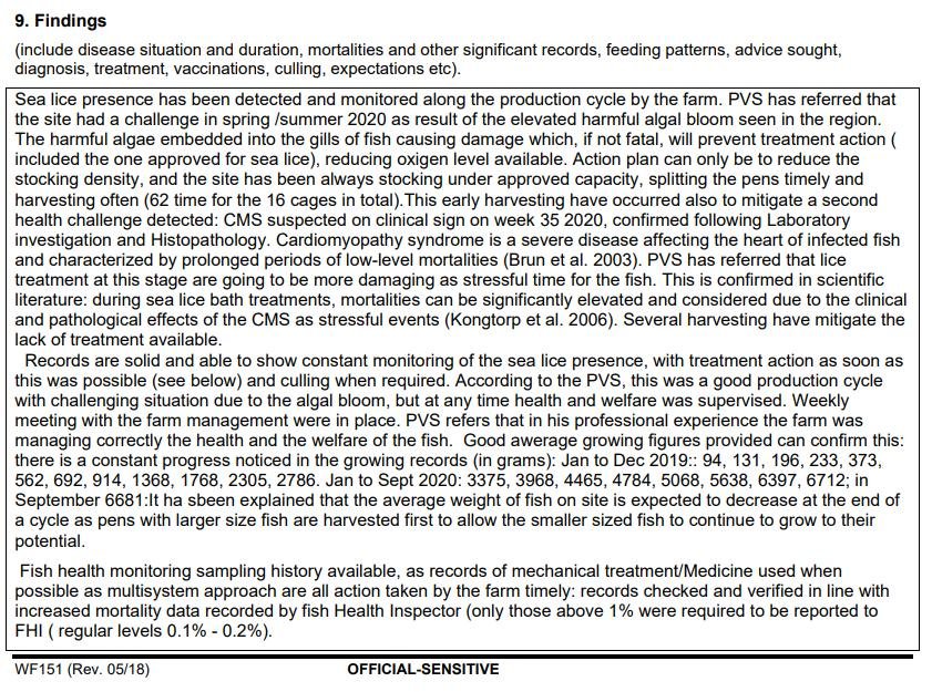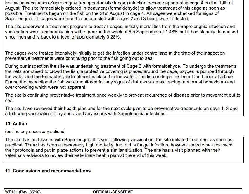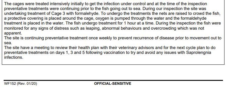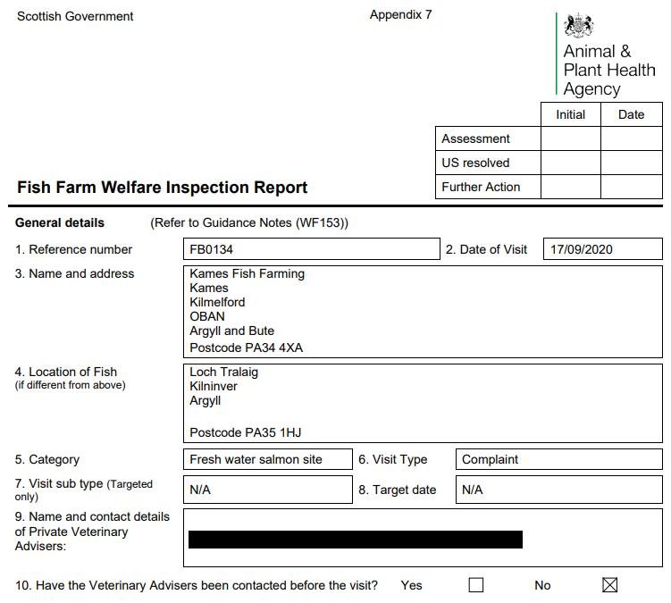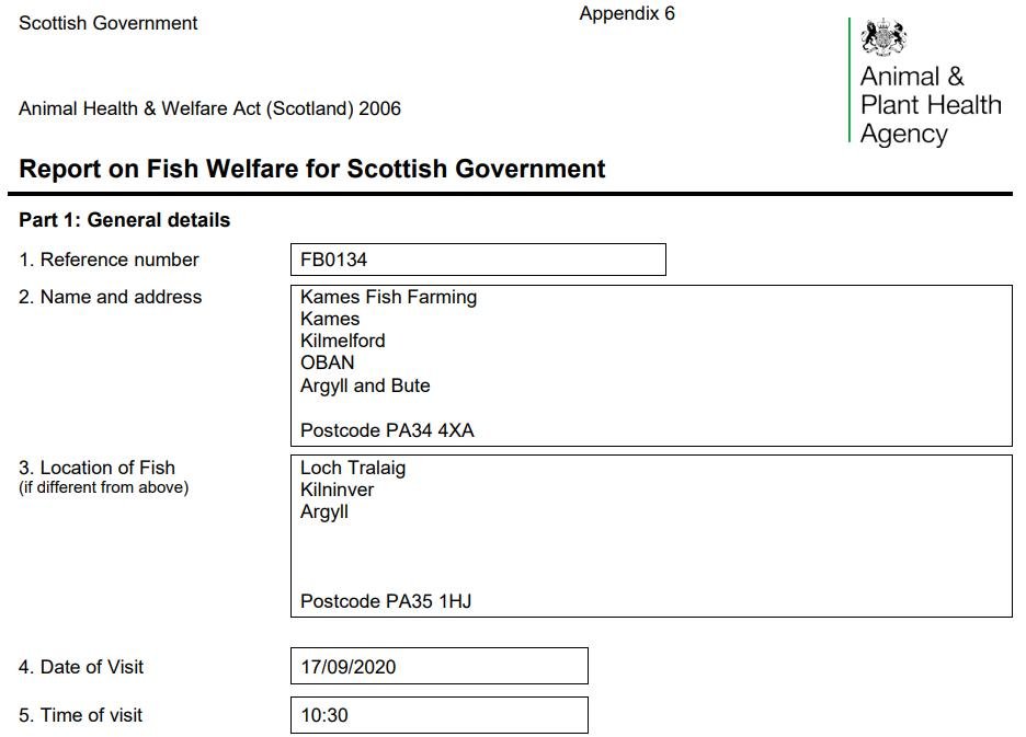 Here's APHA's 'Report on Fish Welfare for Scottish Government' providing details of the inspection visit on 17 September 2020 (Kames therefore had plenty of time to clean up their disease-ridden salmon farming operation).