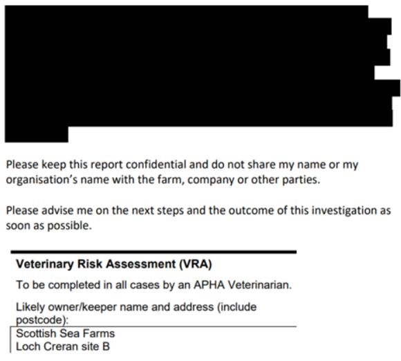 And it appears that APHA tipped Scottish Sea Farms off regarding the outcome of their 'investigation' (Scottish Salmon Watch will be following this up with DEFRA).