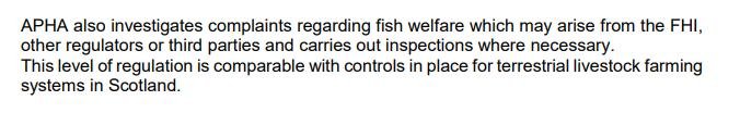 In view of the fact (as sourced from the latest Scottish Government data published in October 2020) there are 76 freshwater salmon farms and 226 sea cage salmon farms (that's 302 salmon farms in Scotland in total) one might question the efficacy of APHA's inspection regime.