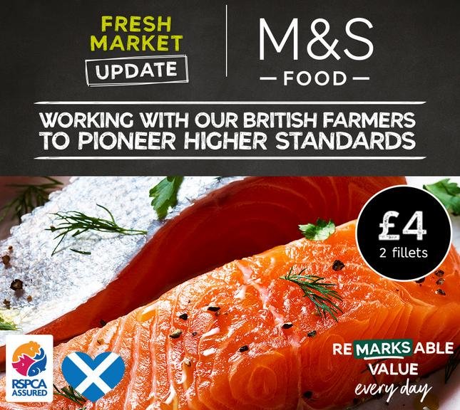 Just this week (12 April 2021), M&S launched a new ad campaign promoting RSPCA Assured Scottish salmon (sourced exclusively from Norwegian-owned Scottish Sea Farms):