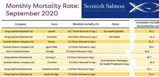 Mortality rates at Scottish Sea Farms (and other companies) are shockingly high – as reported by the Scottish Salmon Producers Organisation: