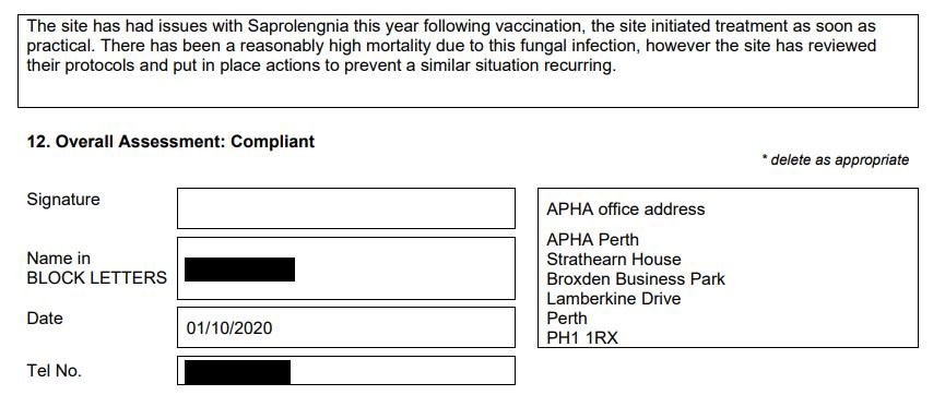 Unbelievably, APHA signed off this appalling case of over 150,000 farmed salmon dying in a five-week period as "compliant".