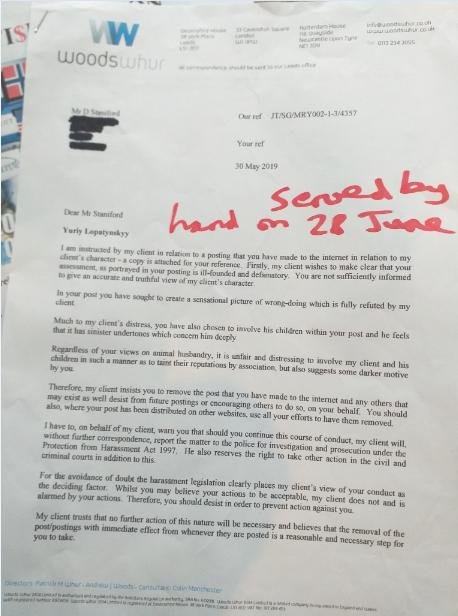 In June 2019, lawyers representing The Scottish Salmon Company's controlling shareholder Yuriy Lopatynskyy threatened legal action against Scottish Salmon Watch for publishing information via 'Scottish Scamon'. Here's the legal threat served in June 2019: