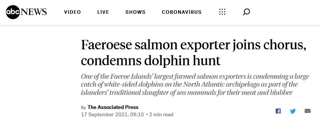 Hyprocrisy @salmon_scottish – Bakkafrost (Faroese owners of 'Scottish' Salmon Co) condemn slaughter of 1,500 dolphins as “totally unacceptable” yet condone welfare abuse of millions of farmed salmon & use of noisy ADDs which harm cetaceans!https://t.co/fI6y3IPk8W @ClydePorpoise